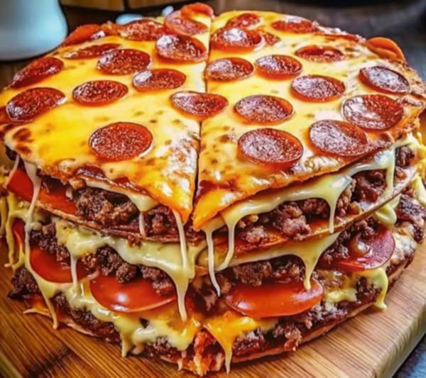 Ideal for family nights, gatherings, or days when you’re craving comfort food with a twist, this stacked pizza offers a satisfying balance of “wow-factor” presentation and familiar, cozy goodness.