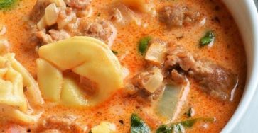 Creamy Crockpot Sausage and Tortellini Soup